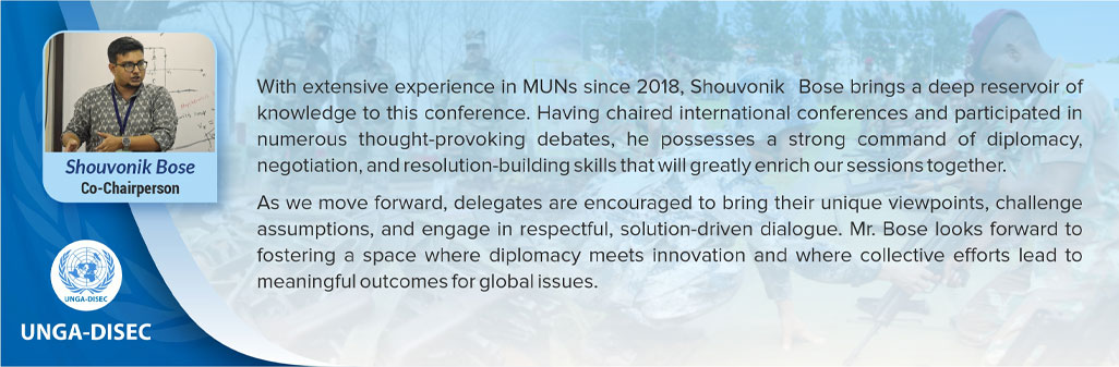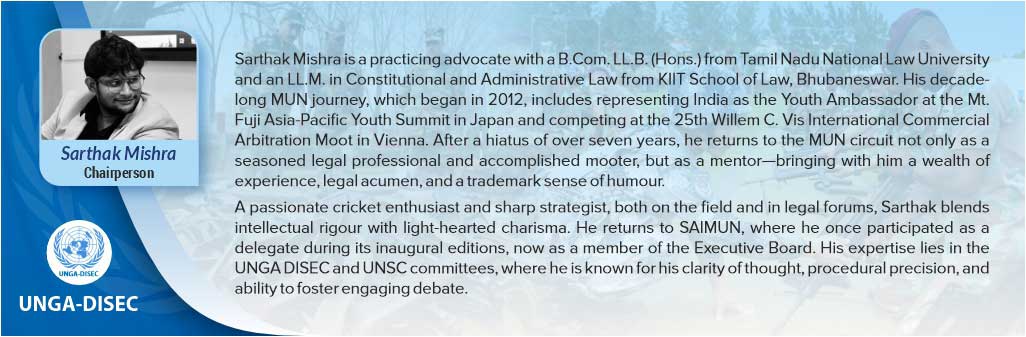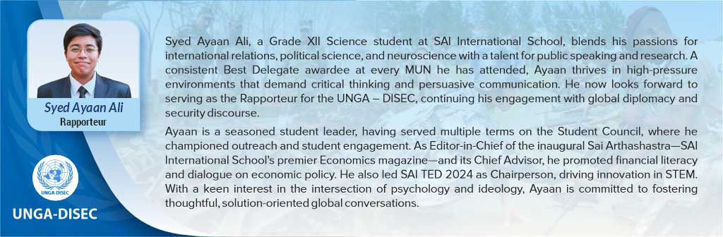 The global arms trade, involving the transfer of weapons and military technology between nations, has significant implications for international security and human rights. A key point of contention in this trade is the influence of the US Second Amendment, which guarantees the right to bear arms. As the US is one of the largest producers and exporters of firearms, its domestic policies on gun ownership impact global stability, as American-made weapons often end up fuelling violence and conflicts abroad. Under UNGA-DISEC, the international community debates how to regulate arms trade while balancing national sovereignty, security concerns, and human rights, with the US defending its constitutional right to bear arms. This ongoing discussion highlights the challenge of reconciling individual freedoms with global security objectives.